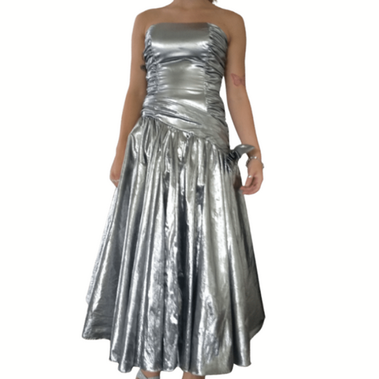 90's silver formal/party dress, size 8-10-HIRE