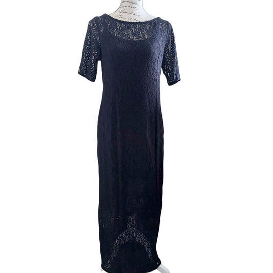 Annah S black lace ball/formal dress, size 12-14- HIRE
