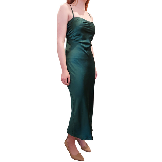 Beginning Boutique emerald green satin silk dress, size 8-HIRE