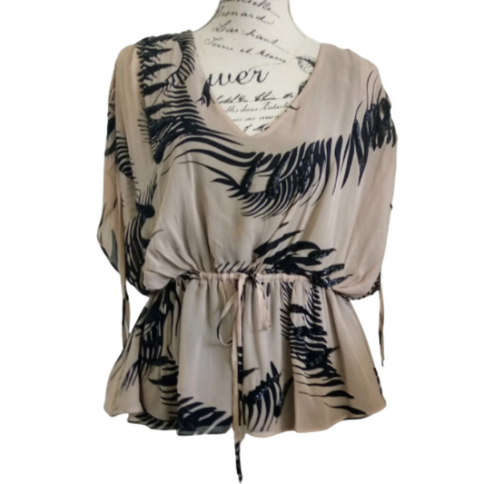 Seduce beige/black silk top, size 10