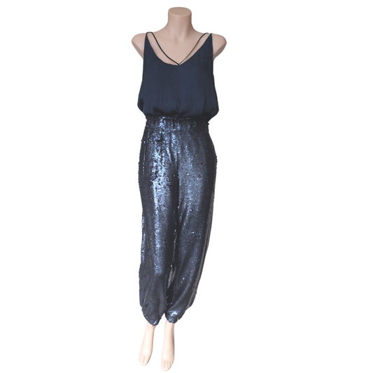 Laura K black chiffon wide leg pants, size 16-HIRE
