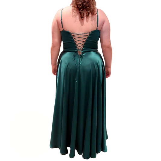 Ladivine By Cinderella Divine green satin silk dress, size 16-HIRE