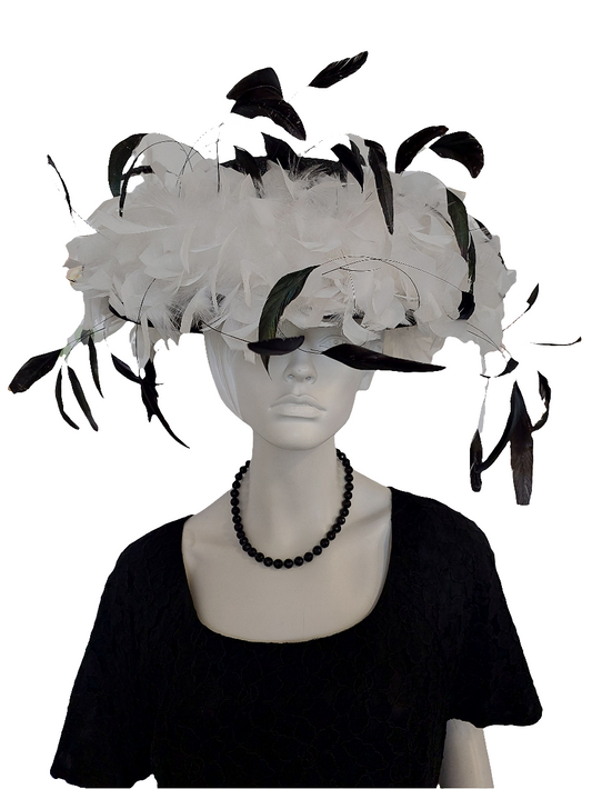 Dolly Varden black & cream hat by Designer Ailee Miller-HIRE