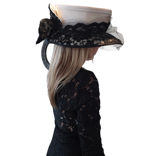 Dolly Varden black & cream hat by Designer Ailee Miller-HIRE