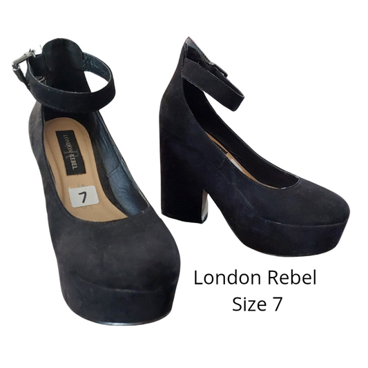 Siren black leather heels, size 10-HIRE