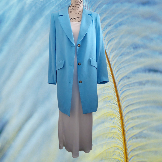 IMAGINE Fashion Italy teal silk dress, size fits 12-14-16 HIRE