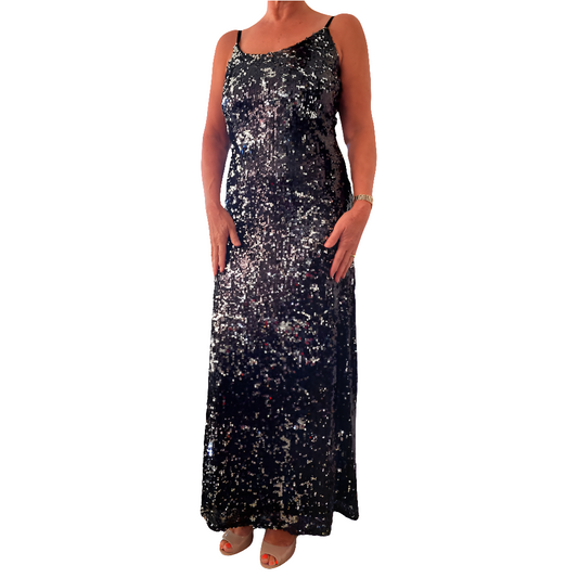 Black & silver sequin ball /formal dress, size 12-HIRE