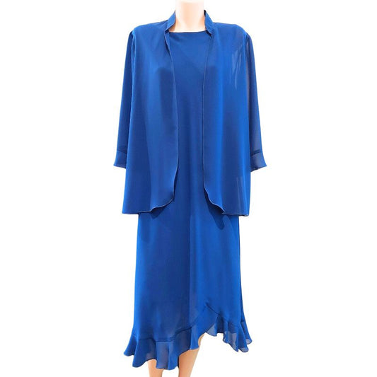 NEW L'Official blue chiffon dress & shrug, size 14