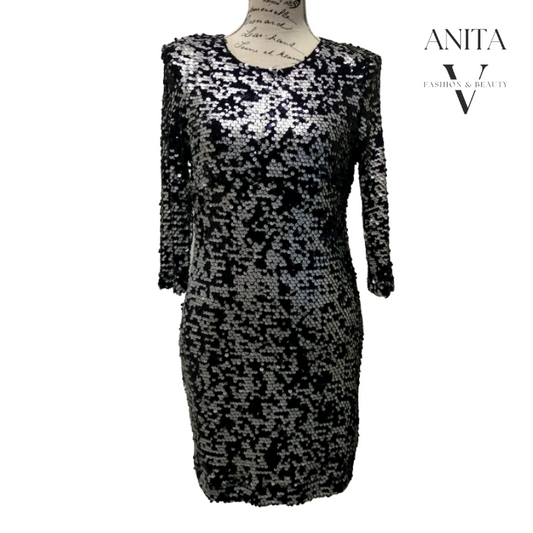 French Connection black & silver dress, size 10/12
