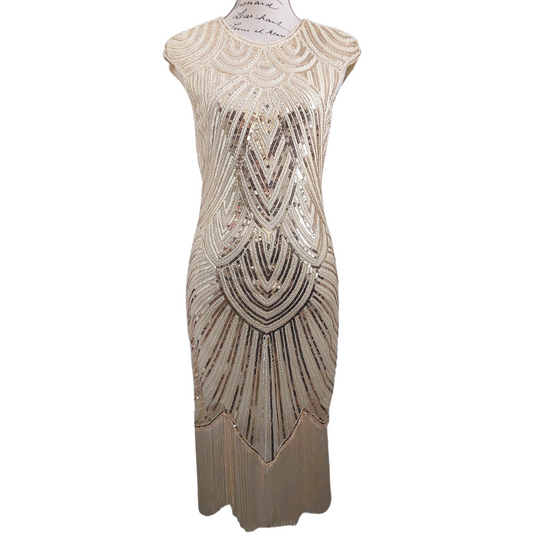 1920's Flapper/Gatsby Dresses, cream silver sequin & beads, size 16