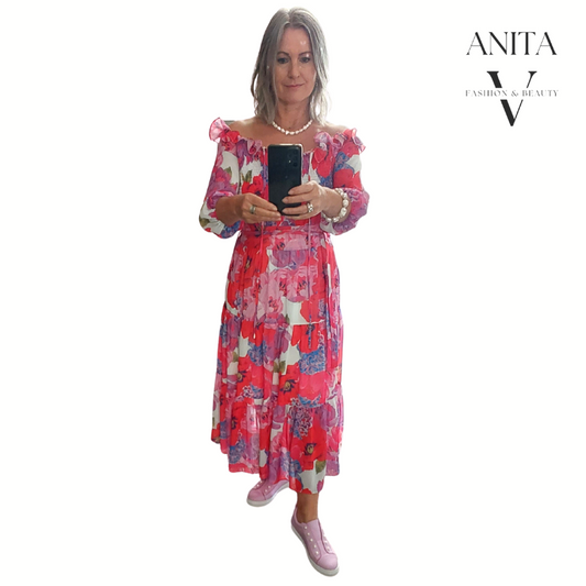 Pia pink floral dress, size M/NZ 10-12