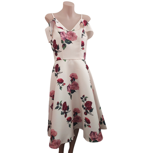 Cream pleated skirt maxi dress, size 10-12