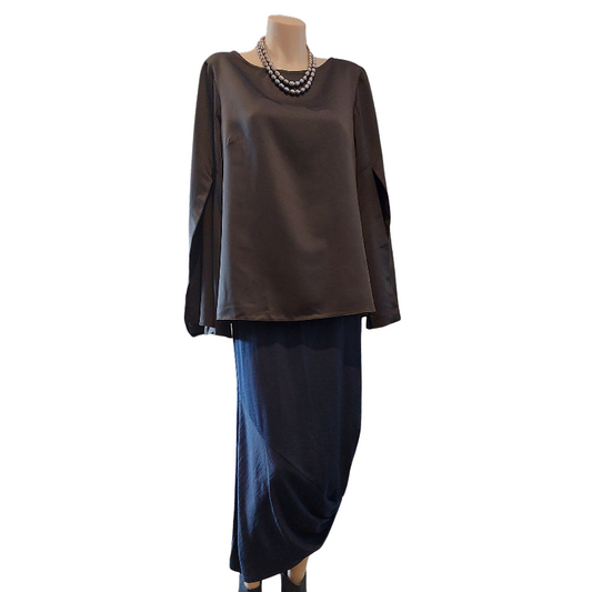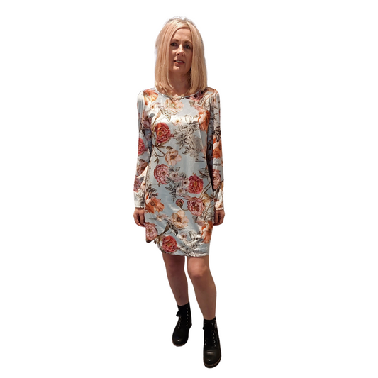 Coop silver panel khaki cotton dress, size L, NZ 12