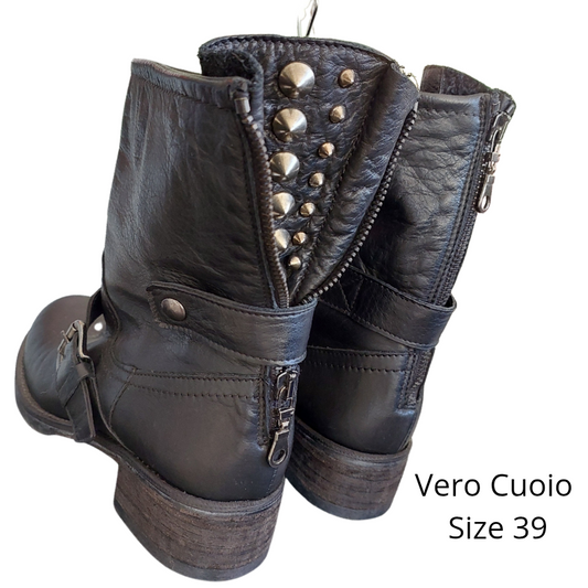Top End black leather boots, size 40/9