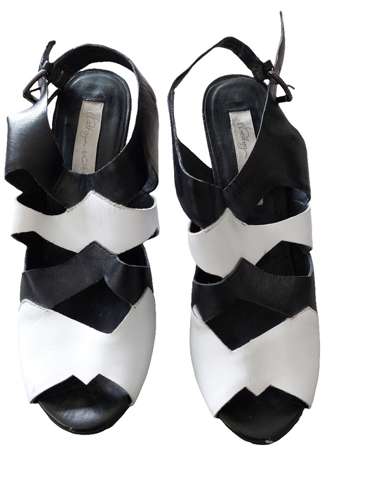 Phoebecharn grey wooden/clear block heels, size 41/10