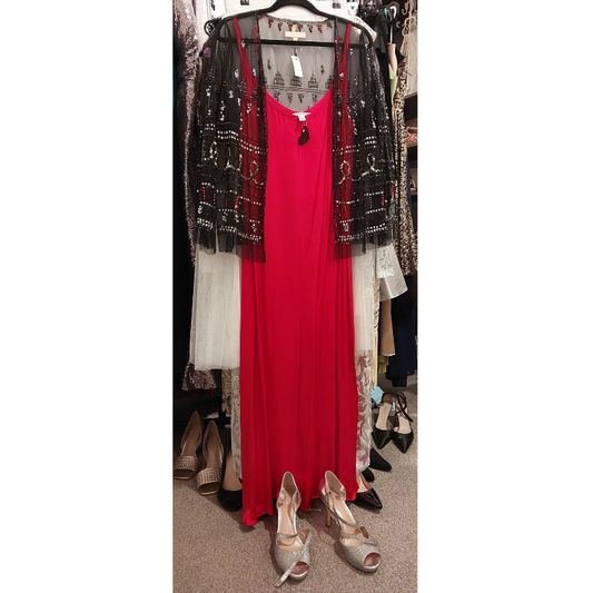 Country Road silky red slip dress & Rubi Yaya shrug, size 14-HIRE