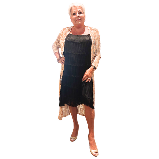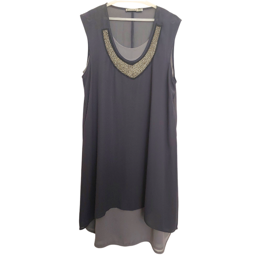 NEW Roman navy sequin top tassel dress, size 14-16-HIRE
