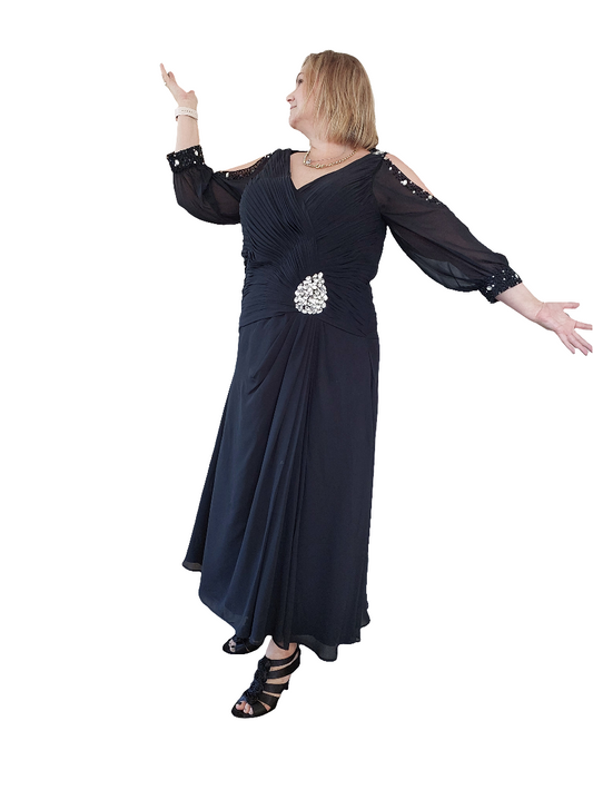 Peter Homan Designer grey crinkle dress size L, fits 18/20/22-HIRE