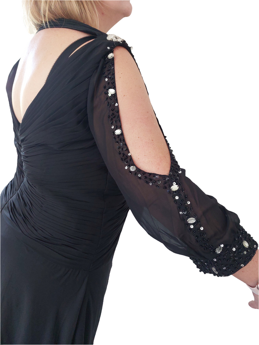 SALE-Krystal Black black beaded evening shrug, size L, fits 16 18 20 22 24
