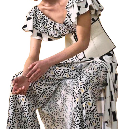 Fenn Wright Manson black/tan/orange cocktail dress, size 8