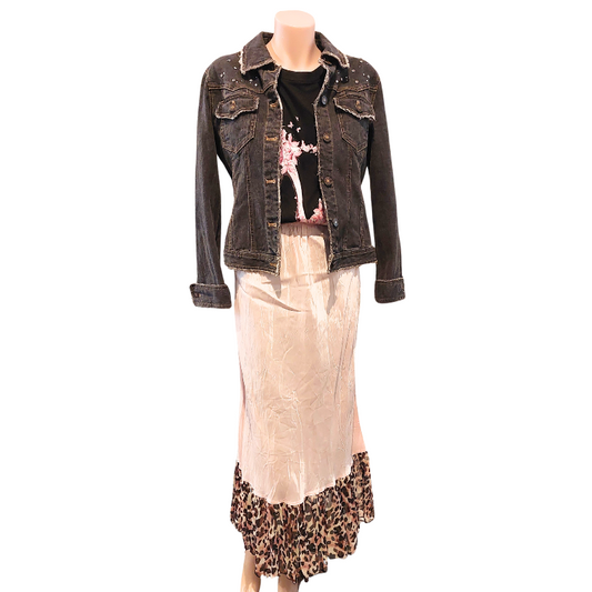 Trelise Cooper black fine mesh /nude lined skirt, size 8