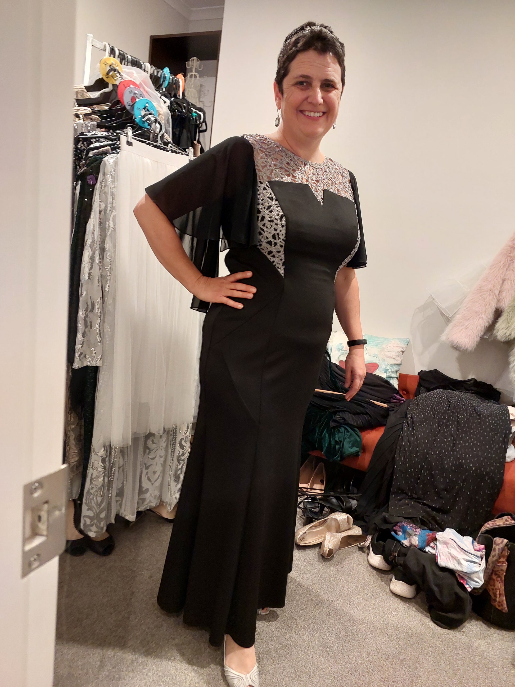 'Outrage' black formal/ball dress, 12/14, Retail $699, HIRE