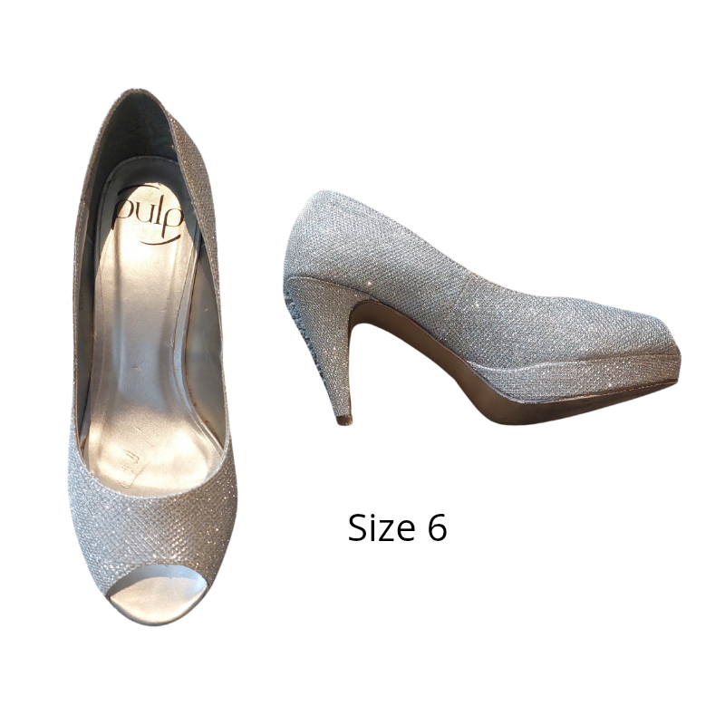 Silver sparkly heels, size 6-HIRE