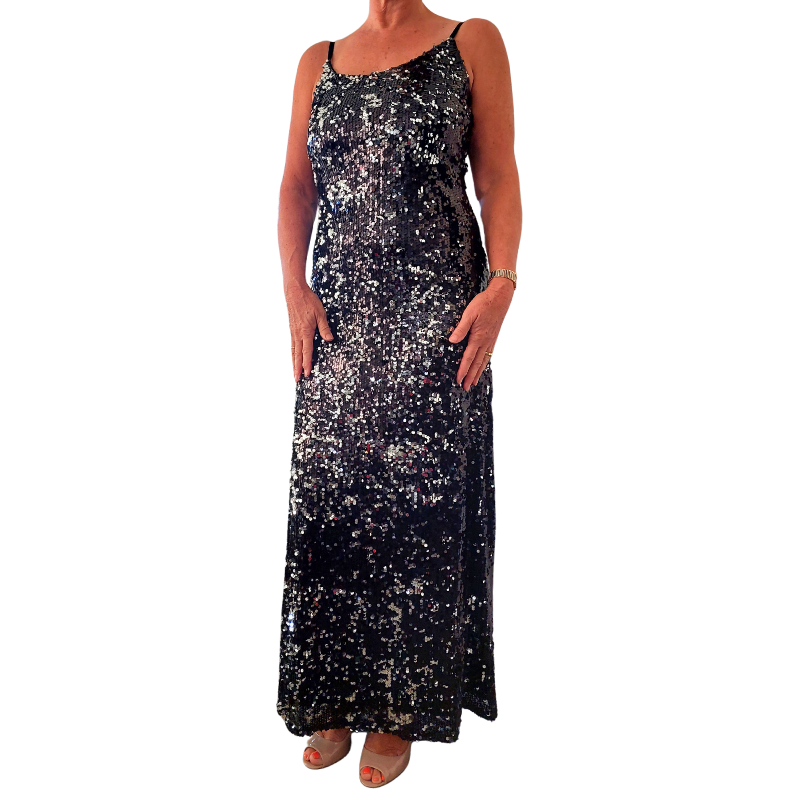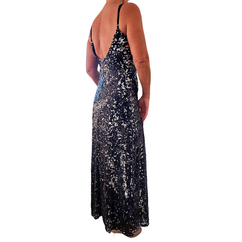 Black & silver sequin ball /formal dress, size 12-HIRE