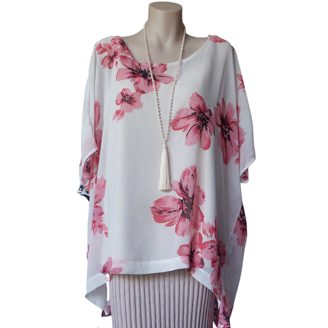 Ivory pink chiffon Summer top, size 20/22