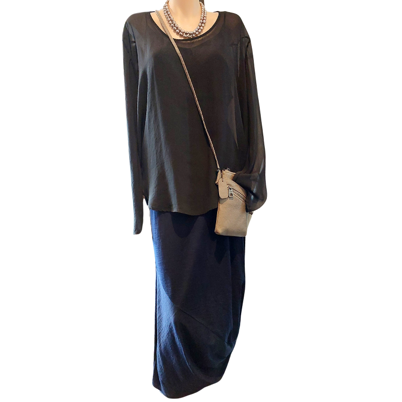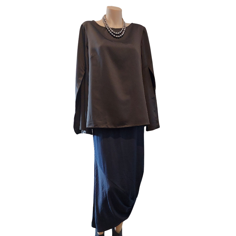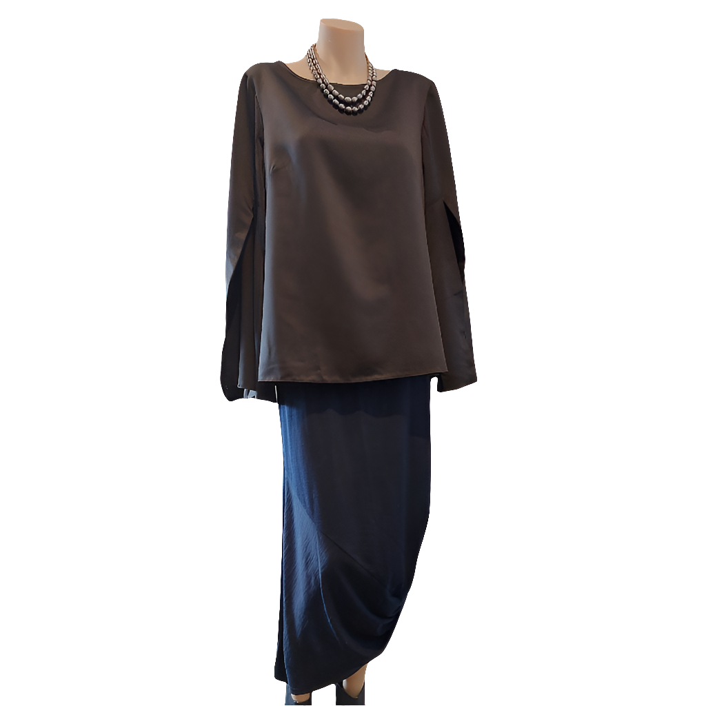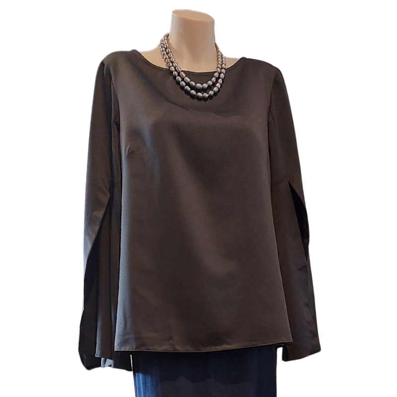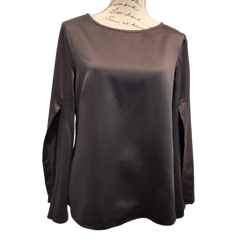 Closet split sleeve silky black top, size 12