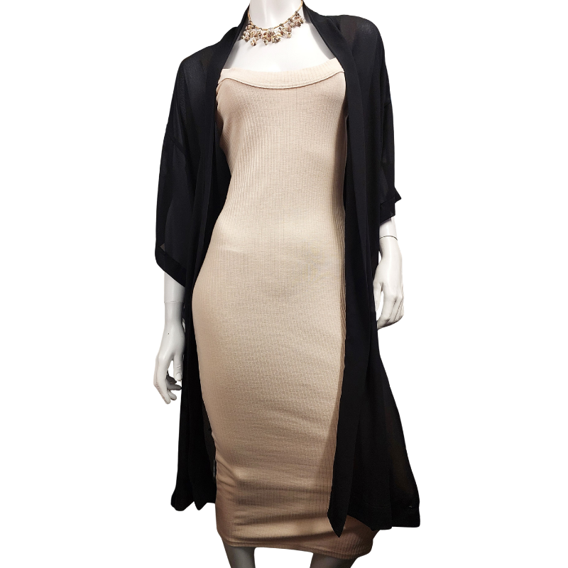 Jaclyn M Designer black chiffon long layering coat, size 10-12-14
