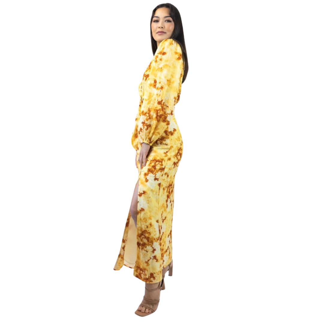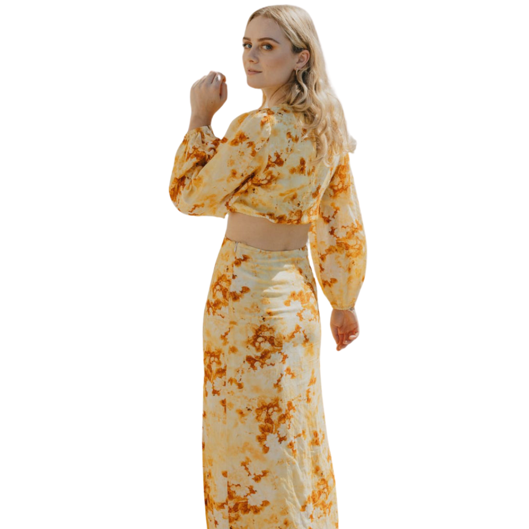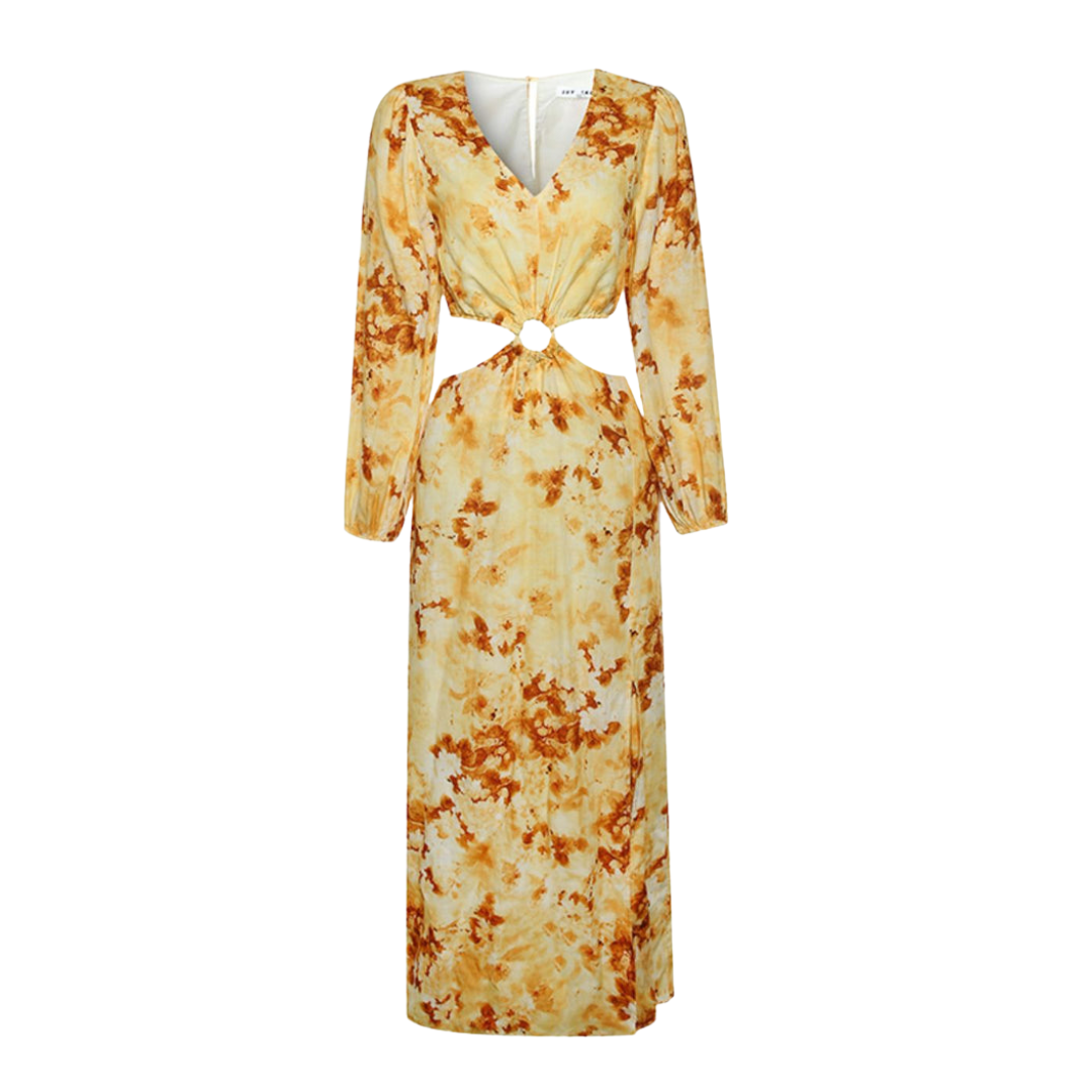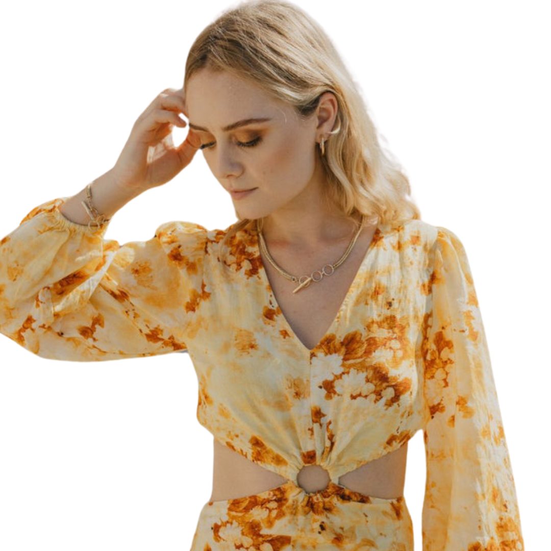 Skyler Marigold Floral L/S V Neck Waist Cut Out